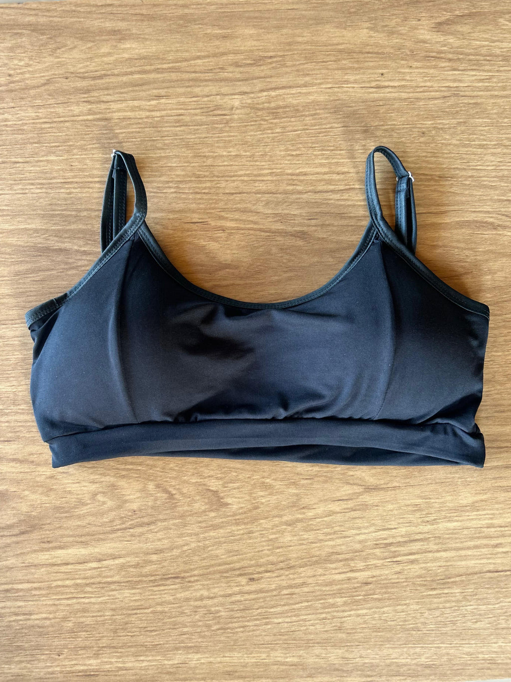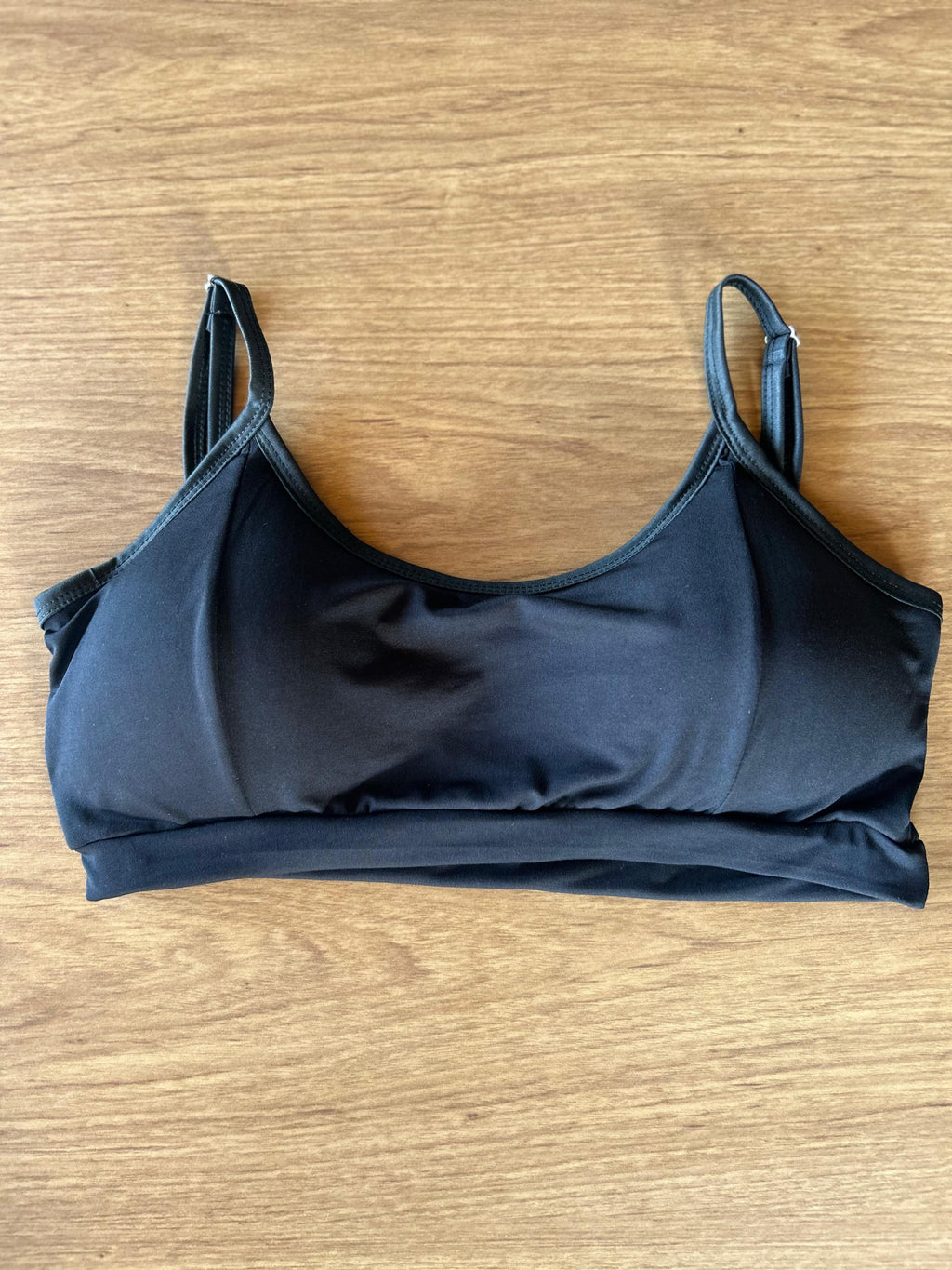 Conforto, sustentação e estilo para os seus treinos! O top preto é feito em tecido macio e elástico, oferecendo ajuste perfeito ao corpo.
