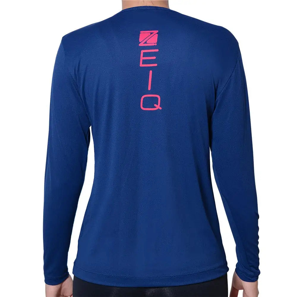 Baby Look Manga Longa Zeiq Azul Marinho – Logo Rosa